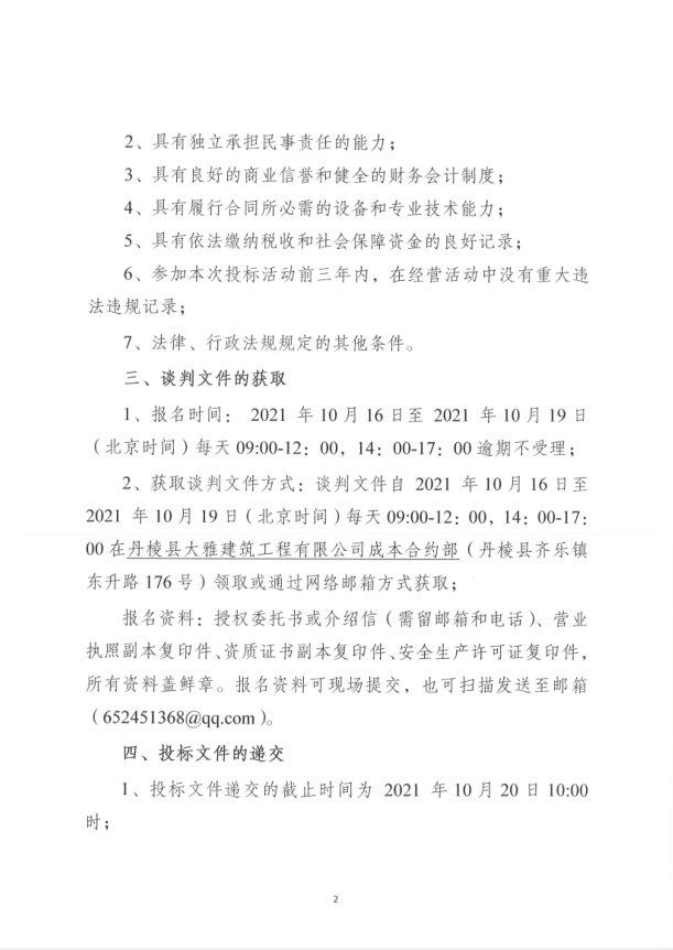 【大雅建筑公司】丹棱縣2021年保障性安居工程老舊小區(qū)基礎(chǔ)設(shè)施改造項(xiàng)目(第二批次)勘察設(shè)計(jì)施工總承包(EPC)三合一小區(qū)鋼結(jié)構(gòu)工程專業(yè)分包競爭性談判公告