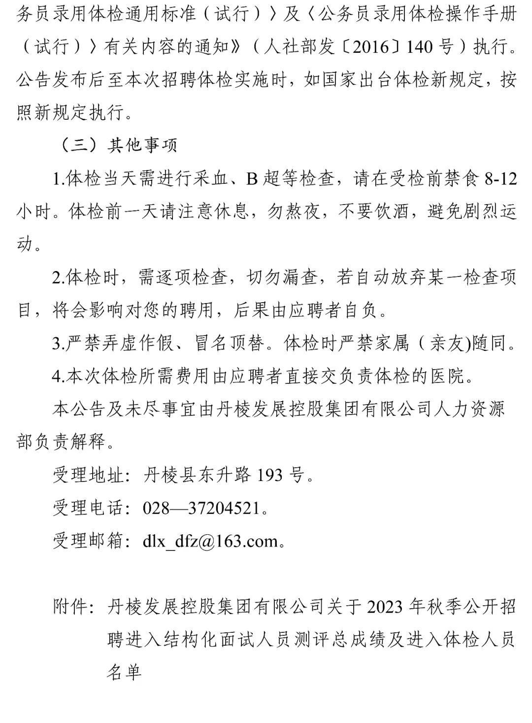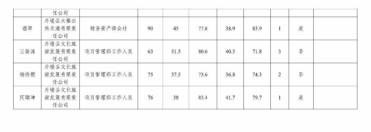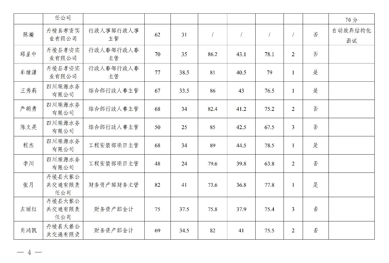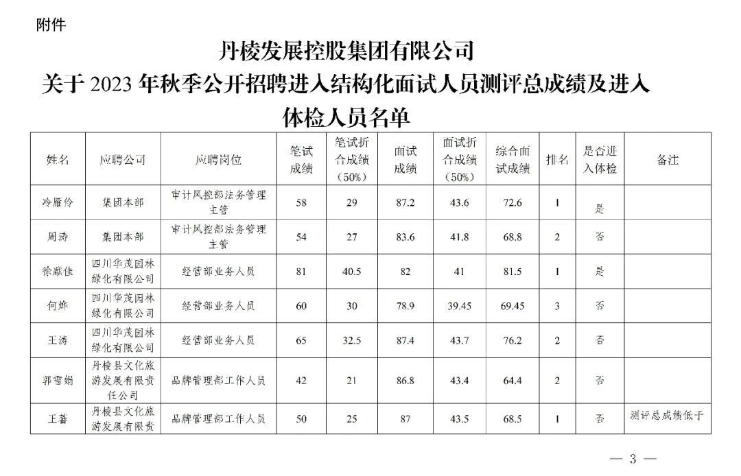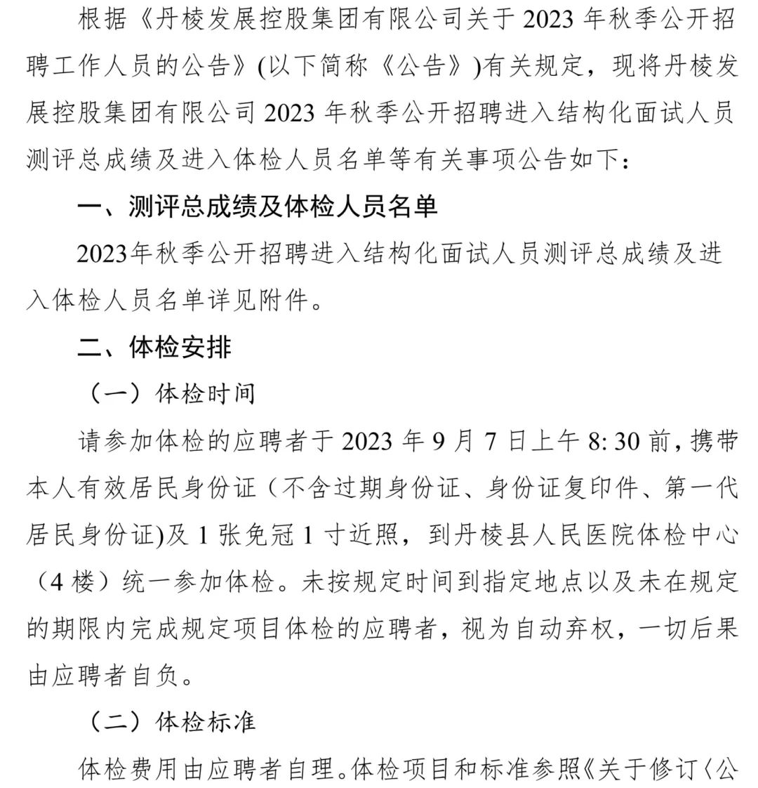 丹棱發(fā)展控股集團(tuán)有限公司關(guān)于2023年秋季公開招聘進(jìn)入結(jié)構(gòu)化面試人員測評總成績及進(jìn)入體檢人員的公告