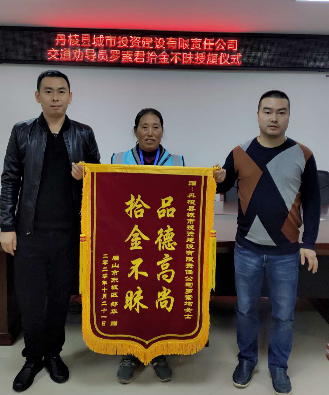 10月20日傍晚,丹棱縣城市投資建設(shè)有限責(zé)任公司交通勸導(dǎo)員羅素君在南岸A區(qū)路邊停車位值守時(shí),撿拾到一個(gè)錢包,內(nèi)有約1000元現(xiàn)金、身份證、銀行卡、發(fā)票資料、保險(xiǎn)柜鑰匙、汽車鑰匙等重要物品。羅素君立即把此事上報(bào)公司并通過失主發(fā)票上的電話號(hào)碼聯(lián)系失主親手交還。