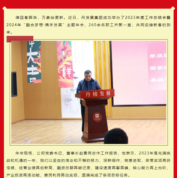 融合夢想·攜手發(fā)展︱丹發(fā)展集團(tuán)舉辦2023年度工作總結(jié)會暨2024主題年會