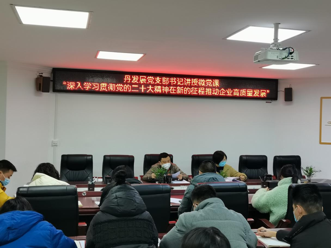 按照縣委《關(guān)于認(rèn)真學(xué)習(xí)宣傳貫徹黨的二十大精神的通知》相關(guān)要求,12月16日,丹發(fā)展黨支部召開黨員(擴(kuò)大)會議,由支部書記講黨課,學(xué)習(xí)貫徹黨的二十大精神。丹發(fā)展公司全體黨員及員工參加。